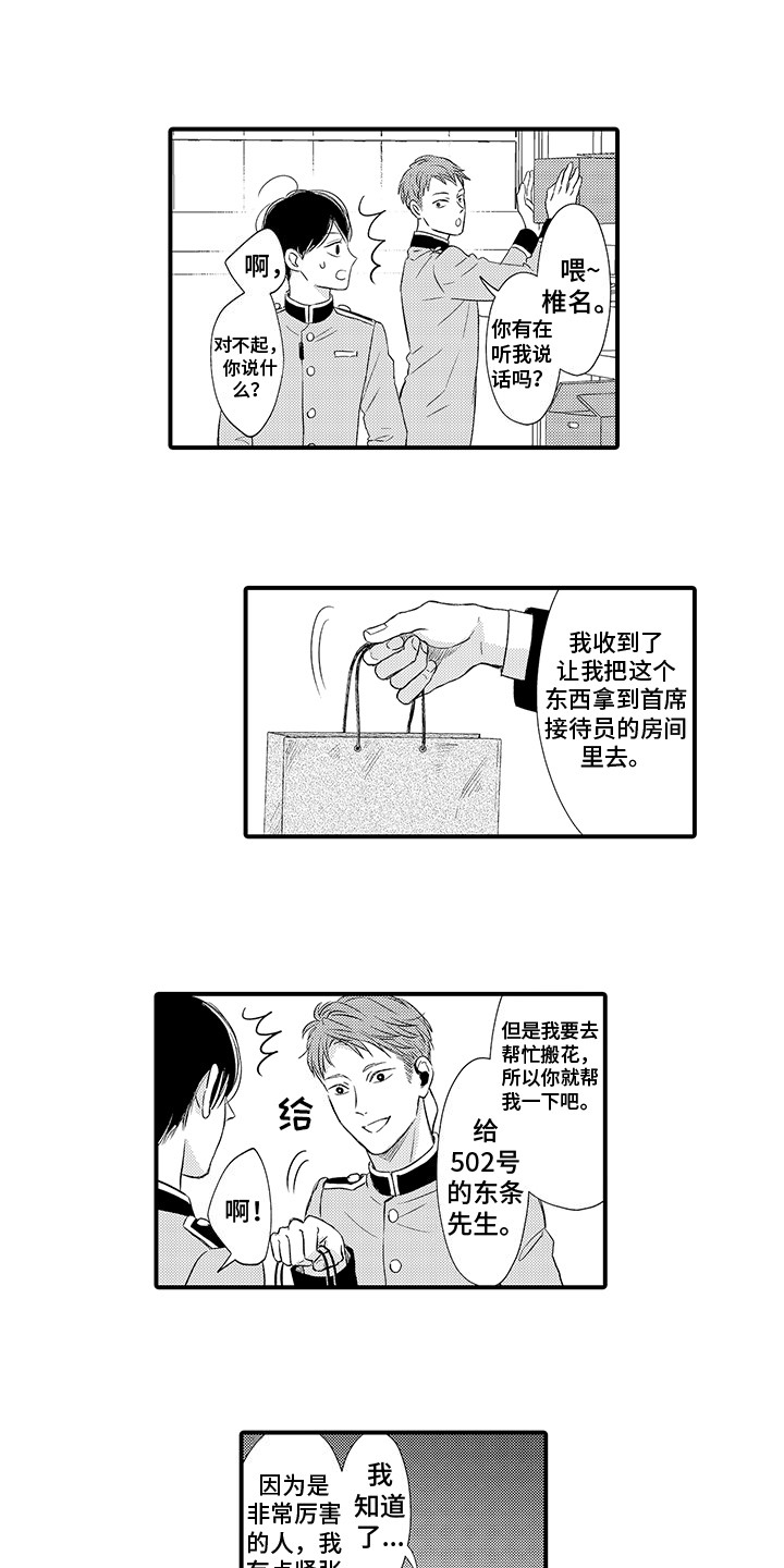 椎名在小时候得到过东条的帮助,并深受感动。以此为契机,在他长大后来到了东条曾经工作过的酒店当起了门童。令他没想到的是,许多年未见的东条再次出现在了他的面前...