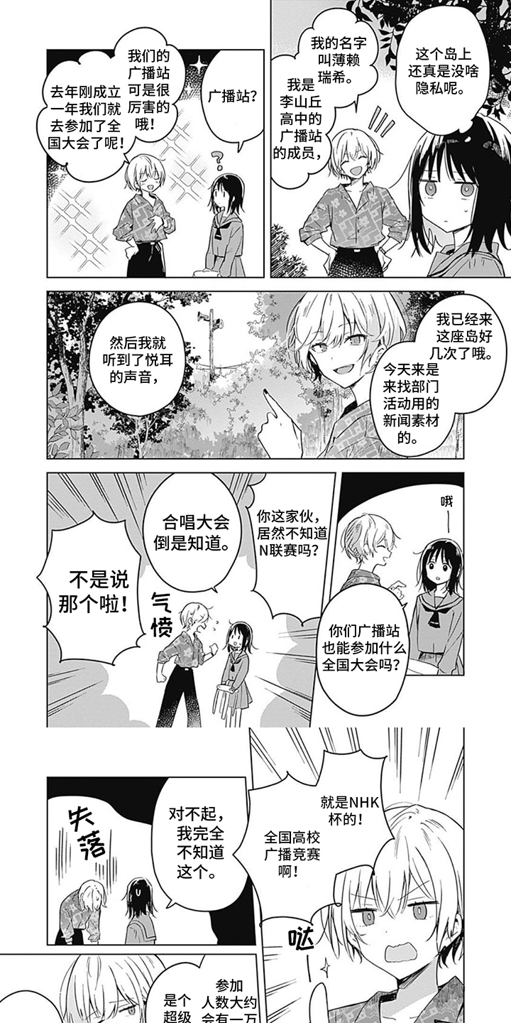 花奈从小就对朗诵十分憧憬,当她升学进入高中时,与广播站的成员...
